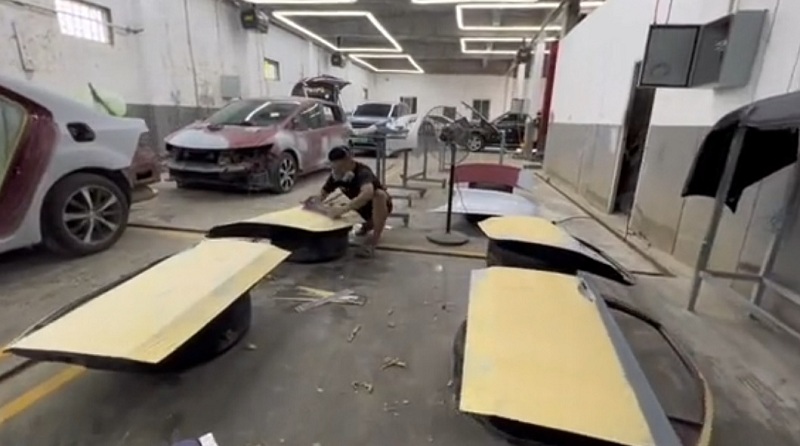 - Bước 2: Gò lại những chỗ bị móp méo, bong tróc, rách, căn chỉnh lại những vị trí bị mất form